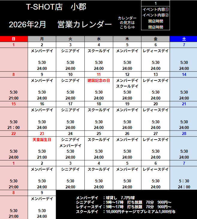 営業カレンダー